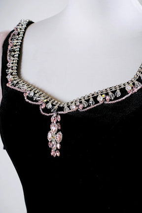 Black Velvet and Pink Tulle Long Prom Dress, A-Line Short Sleeve Party Dress